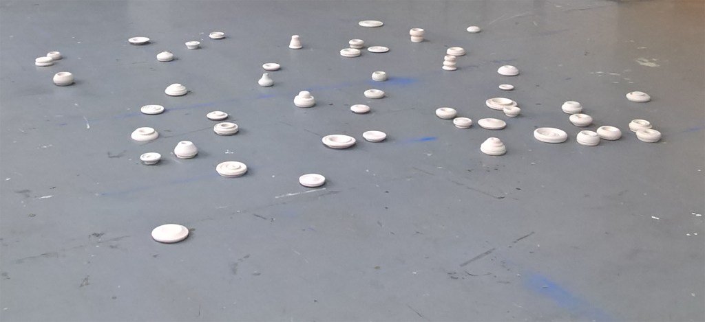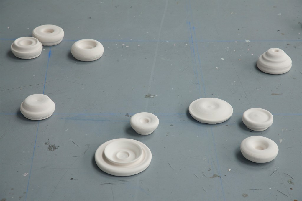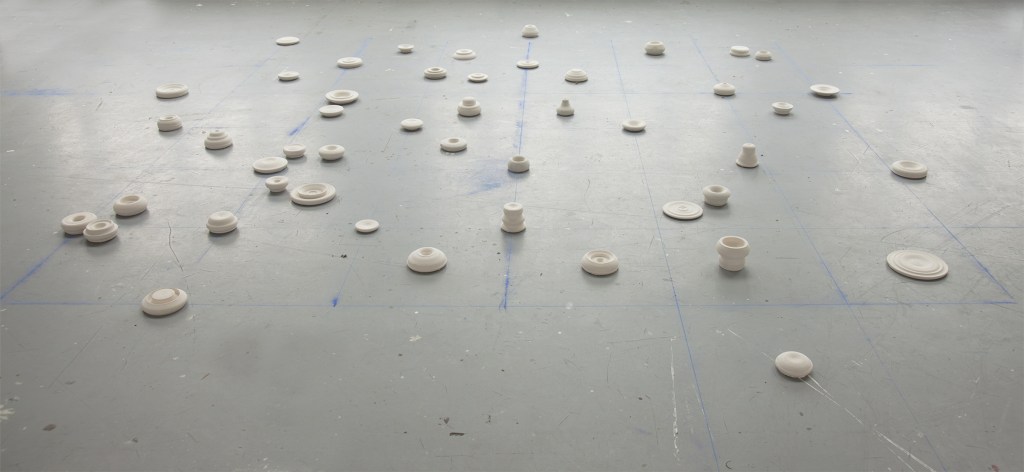 Gestes d’appropriations Gestes d’appropriation . Argile et dessin au cordeau de menuisier . Présentation variable . 2016 .